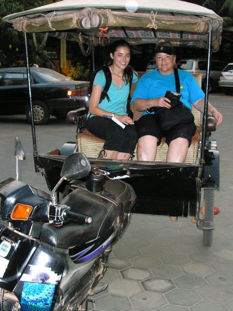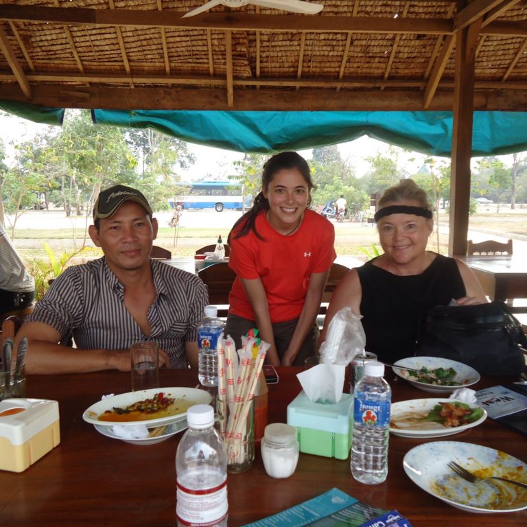 It took our tuk-tuk driver all day to drive to these areas. That was the best part of the whole day! Elise and I got to get an open-air view of the countryside of Cambodia. Can I tell you the story about our tuk-tuk driver? We hired the same driver for all three days, which was a good thing for him. The country is teaming with tuk-tuk drivers and competition is stiff. So, he had steady pay for 3 days! Everyday, we invited him to lunch, which was unusual I learned. Nobody at the restaurants would give him a menu until I insisted. His name is Par Kong, but insisted to be called Kong….as in King Kong, he said. He was always smiling, even when he told us about land mines blowing up people everyday. He LOVED to try to speak English, even though we could hardly understand him because his vocabulary was limited. But, Elise and I were patient. Oftentimes we resorted to hand gestures and role playing to converse. Kong really appreciated it when we understood him. It gave him great joy and spurred him on to speak even more English. When we would say, " AHHHH!", to let him know we understood, his face would break out in huge smiles and he would talk even more. By the end, he had become our tour guide. He would say, " I have plan for you. Kong take care of things". So, two women from the U.S. were in his caring hands and he just LOVED it!"