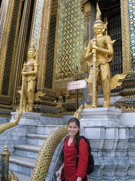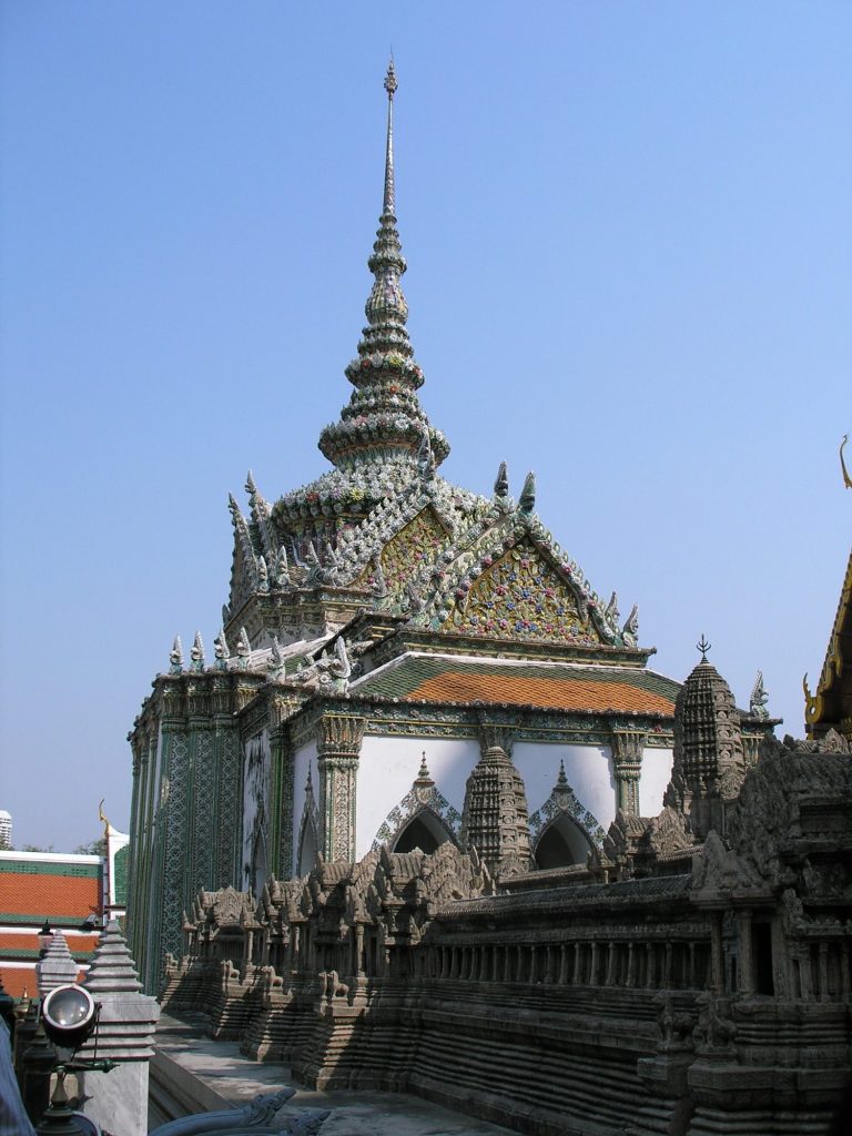 The Emerald Buddha is not really made of emeralds, but is actually made of a vibrant green jade stone. It was discovered by conquerors during one of the wars, covered with white plaster. One of the conquerors noticed that the nose of the Buddha was chipped and saw a green substance underneath. After removing the plaster, a very green Buddha appeared!