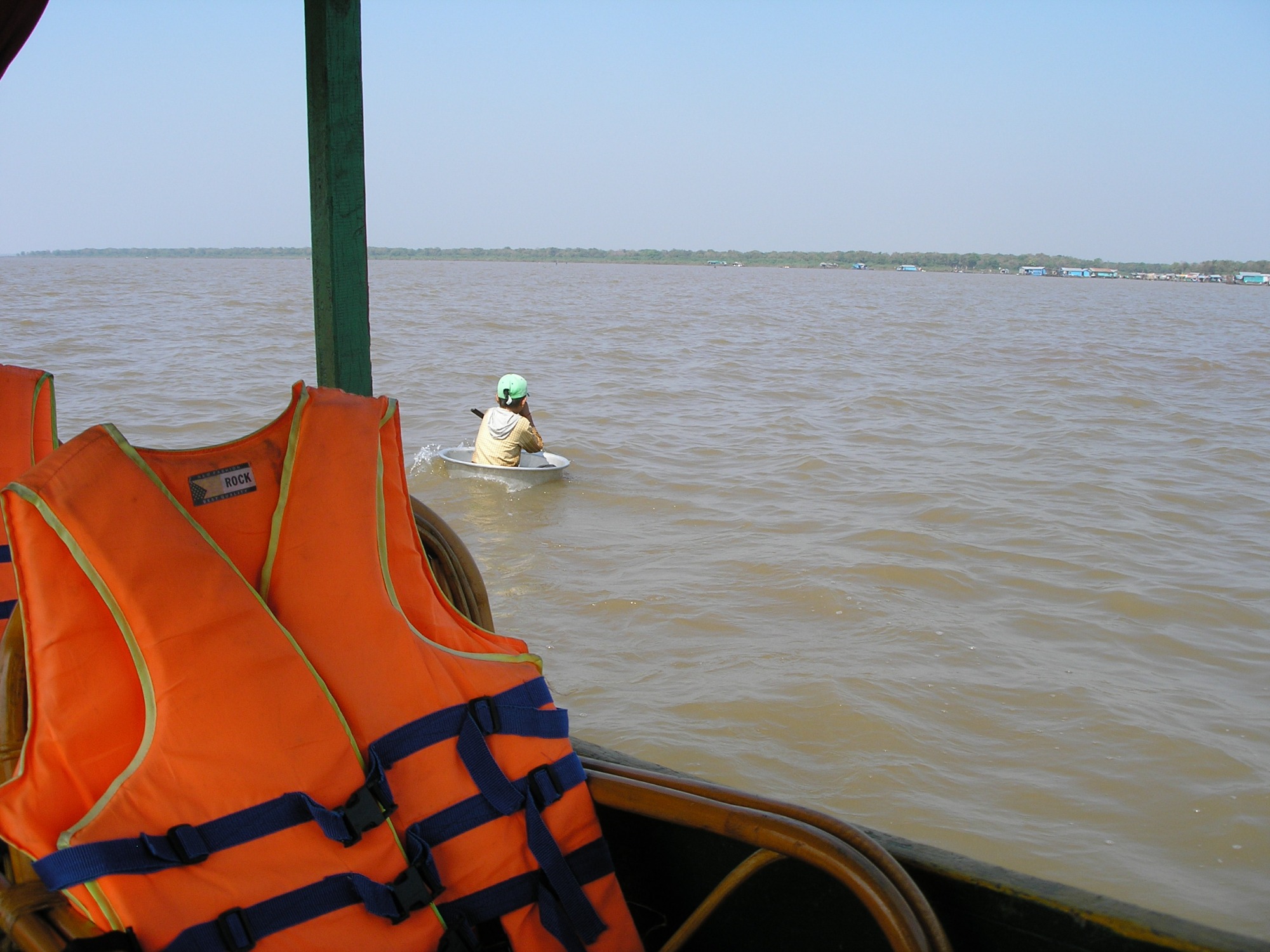 Back to the boat people……As we neared the Vietnamese floating village, we were first greeted by a small boy in a large metal saucer, paddling away trying to catch up with us. Every so often, he would stop paddling and use a cup to bail out the water that entered from paddling. I asked the guide about this and he said that he was coming to us to beg for money. He advised us to not do it because, if they earn enough money per day, his parents will not send him to school. So, we turned him away and he paddled off without any grief.