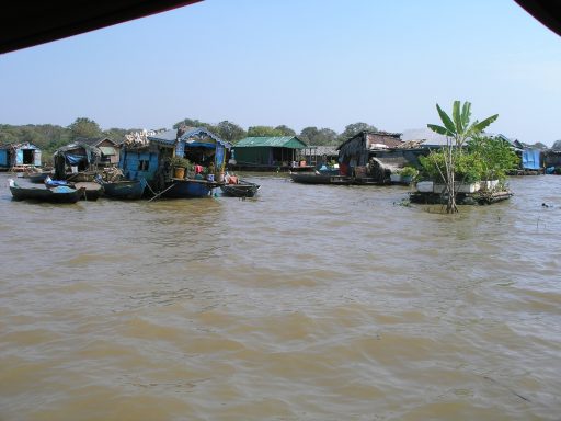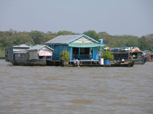 Our guide explained to us that the lake is twice its size during the rainy season and shrinks during the dry season. We are now in the dry season and the lake is half its size. Our guide explained that the boat people move their villages around depending upon the condition of the sea at the time. At the height of the rainy season, when monsoons batter the seas, the people move to dry land. I really don't recall what they do with their floating houses when they abandon them during this time.