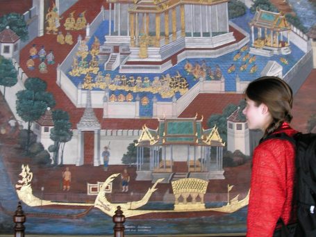 Overjoyed, the man now joined in and a lengthy conversation ensued. They both were going to Thailand to study the culture of the people, as it relates to the ancient people of Thailand. Full of glee, they explained the kinds of adventures they would be experiencing, which included days and days of silence and mediation, as well as Thai kick boxing. They spoke as if all three of us were united in a literary Mecca of human exploration of cultures and minds. "Hey, don't they realize I am just a gal from Morrow, Ohio?", I pondered.